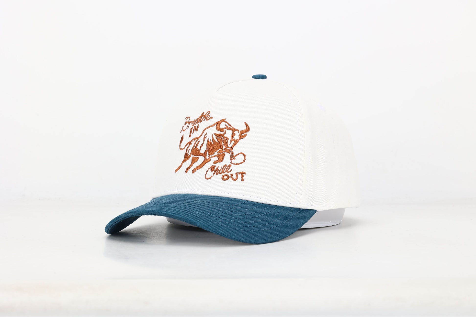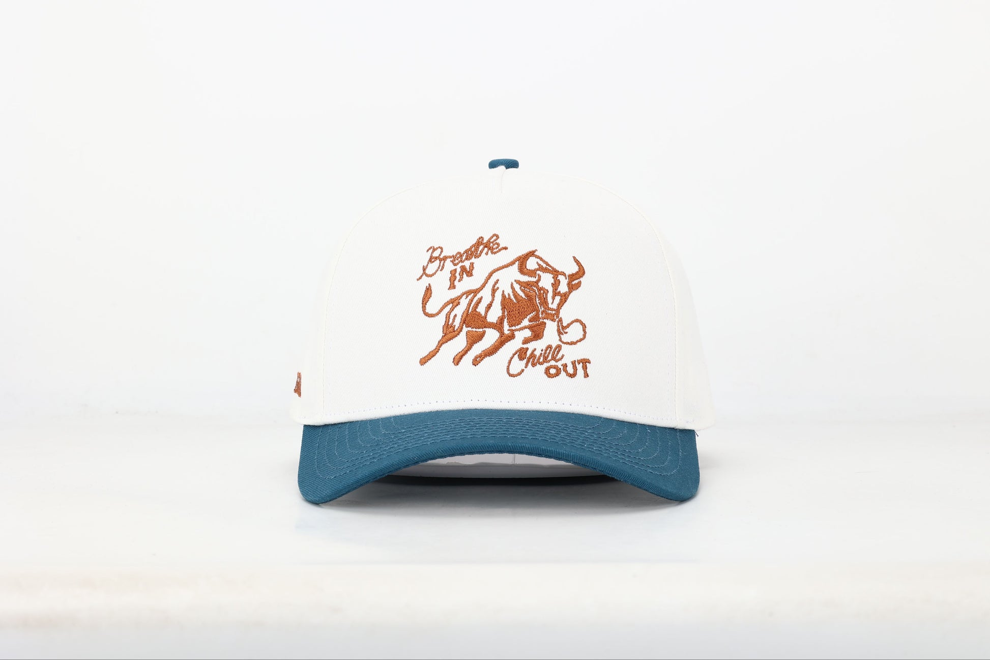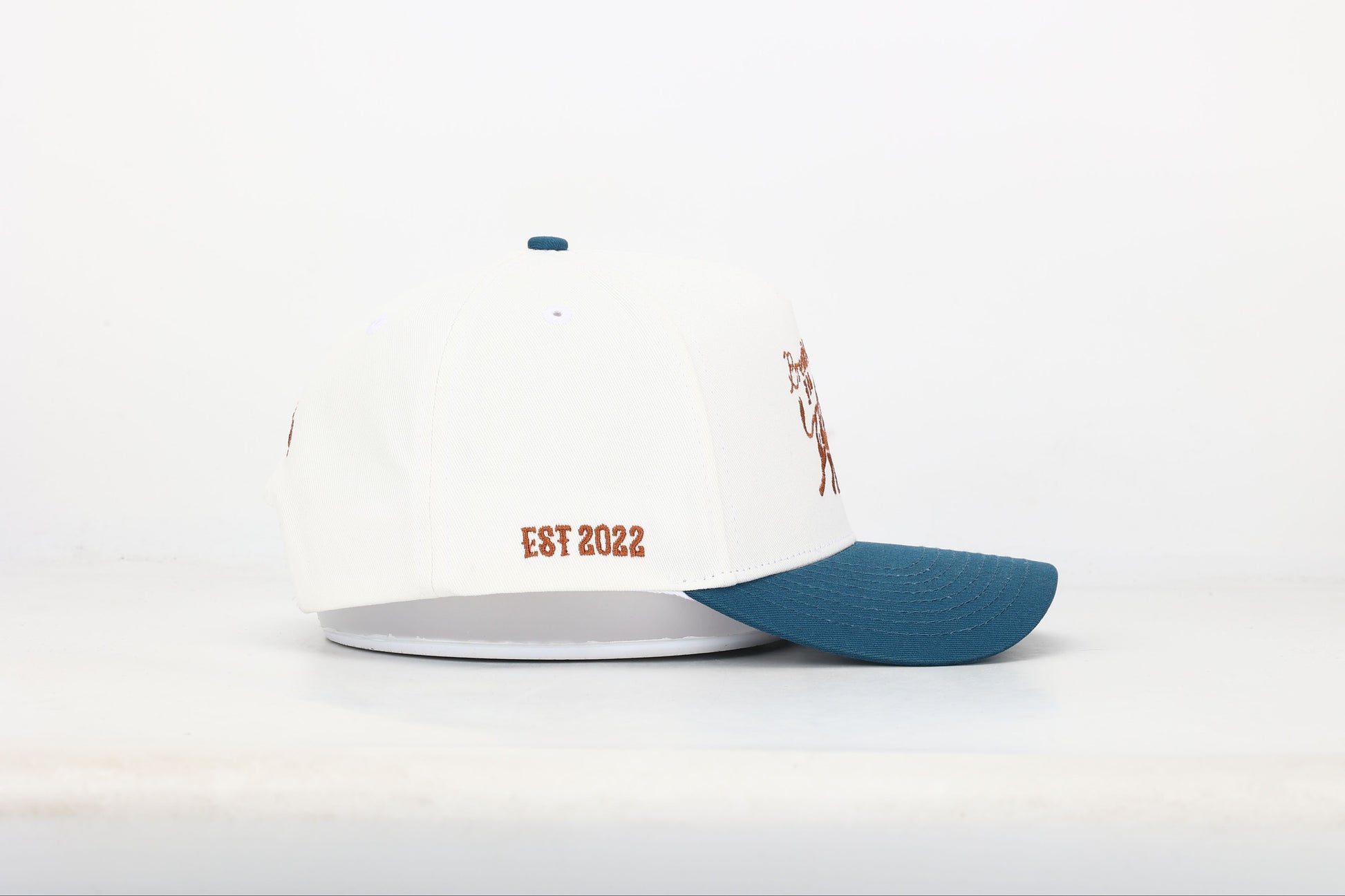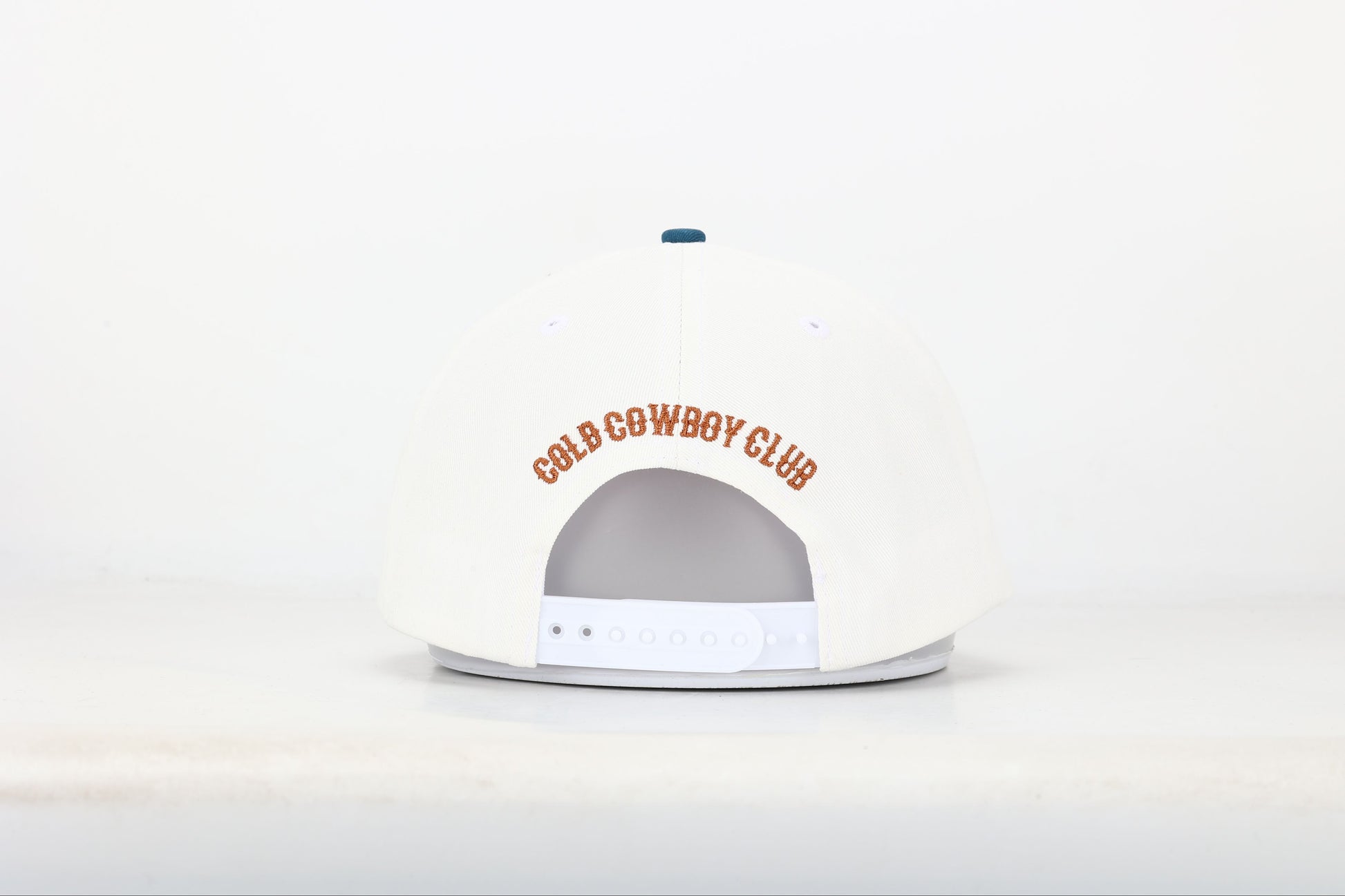 The Denim & Ivory Five Panel Style hat with Cold Cowboy Club Cowboy Burnt Orange embroidery is now available for sale! Don't wait - order now before quantities run out.